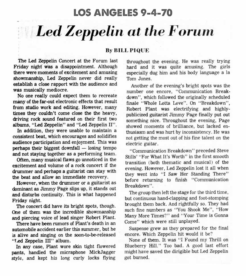 Los Angeles Forum Review (9-4-70 | Peninsula News)
