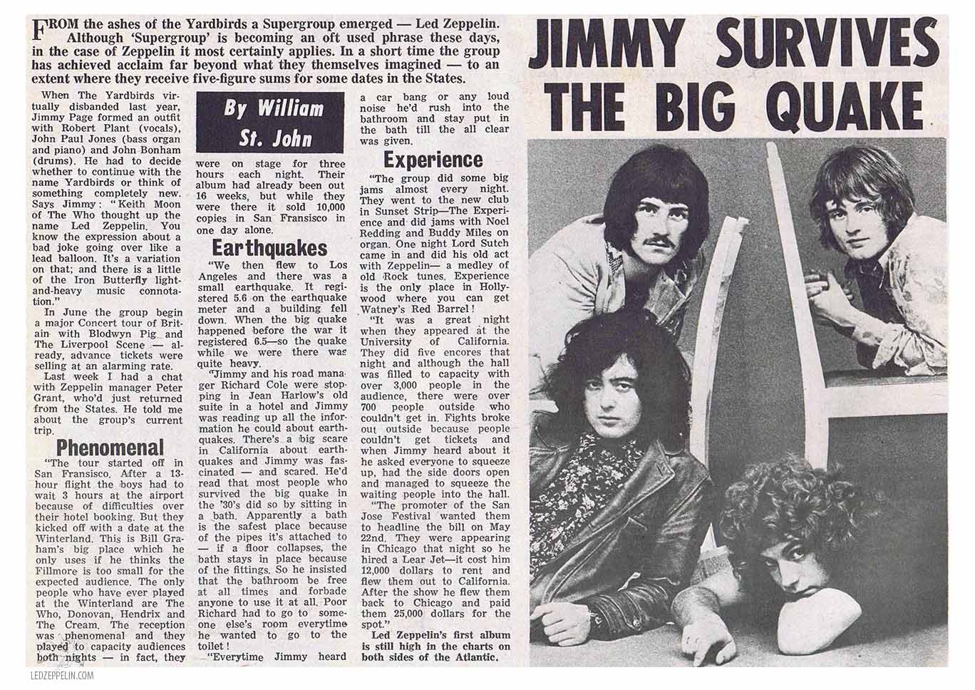 May 1969 - Peter Grant Interview (Jimmy Survives Big Quake) -