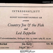 Uppsala University Hall, Sweden 3-14-69 ticket -