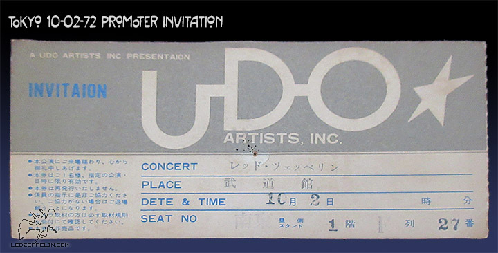 Tokyo 1972 promoter's invitation -