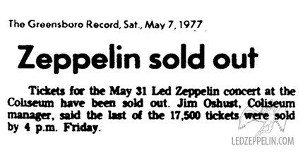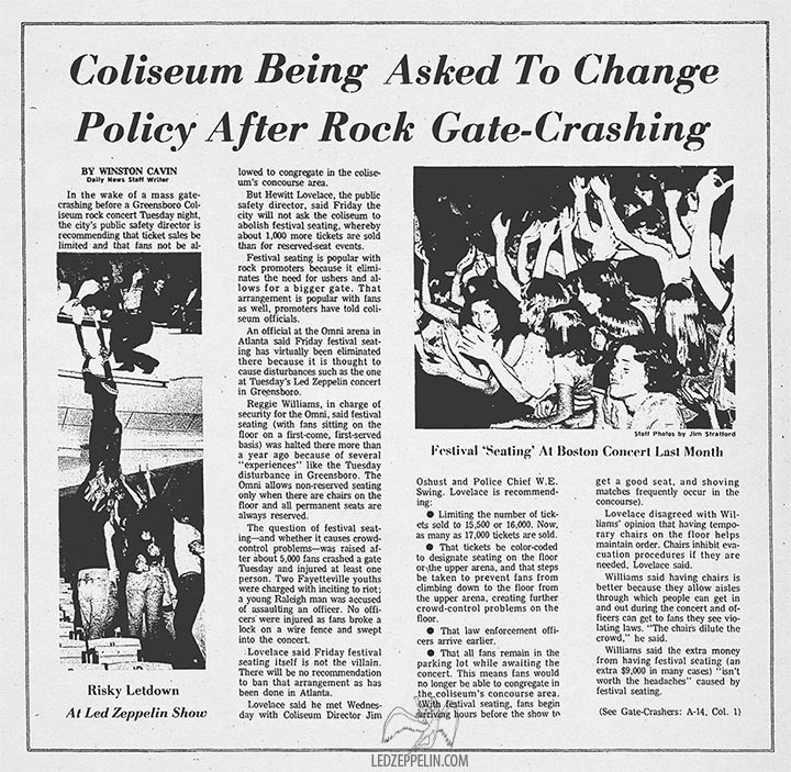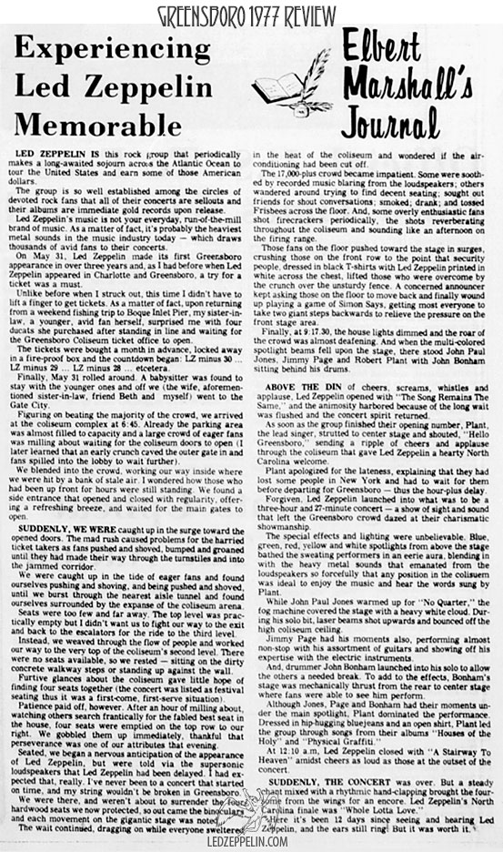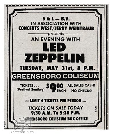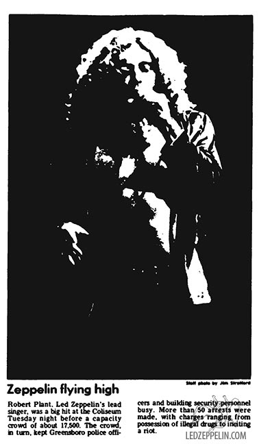 News Report: On May 31, Led Zeppelin made its first Greensboro appearance in over three years. We weaved through the flow of people and worked our way to the very top of the coliseum's second level.