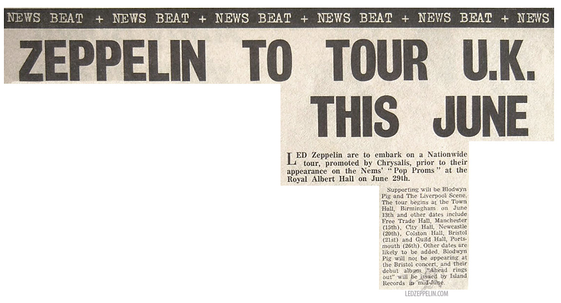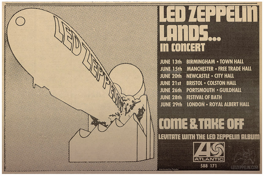 A Bristol audience got their first taste of Led Zeppelin and were taken on an exciting avant garde music trip at the Colston Hall. Master guitarist, Jimmy Page, set the mood with a dramatic guitar solo which gold wild applause. At times, the music was incredibly disjointed but came together again to form a crescendo. [P. Weston / WDP / June 1969]