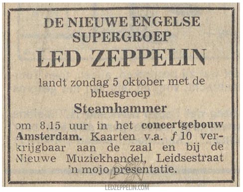 Twelve minutes of Dazed & Confused is aired on "Dit is het begin" ("This is the beginning") TV program on Nov. 12, 1969, VARA TV network.