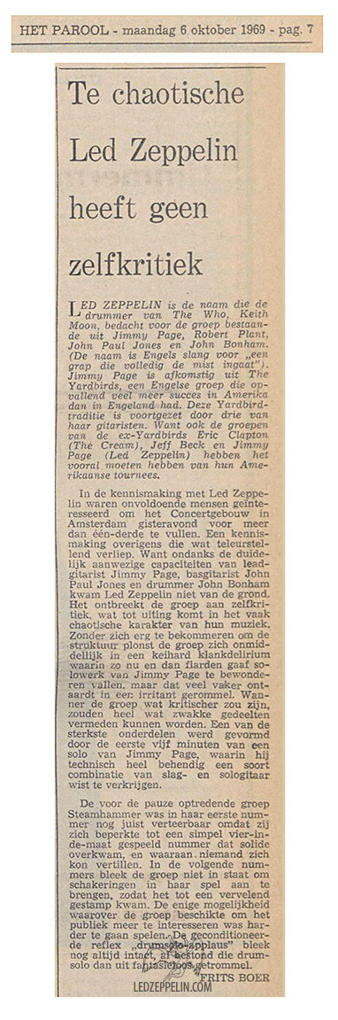Review in Top Pop Stars magazine: "The concert hall was packed, TV cameras were everywhere and the atmosphere crackled. Heavy, crashing Zeppelin sounds swept the audience onto another plain and the timing of their applause indicated their appreciation of the material. Wild, standing ovations brought the group back time and time again and they finally left the stage exhausted."