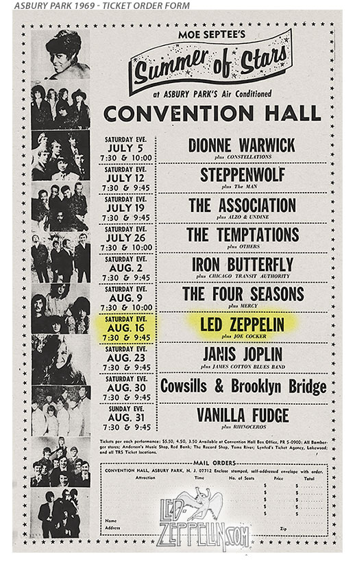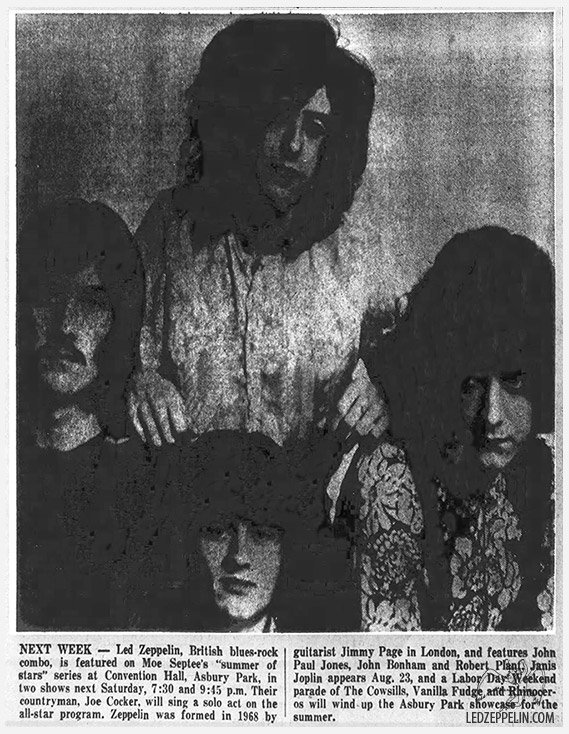 Led Zeppelin play two shows (7:30pm & 10:00pm) with Joe Cocker support act, who travelled directly to the Woodstock festival after the gig. Peter Grant turned down the offer for Zep to perform at the 3-day event.