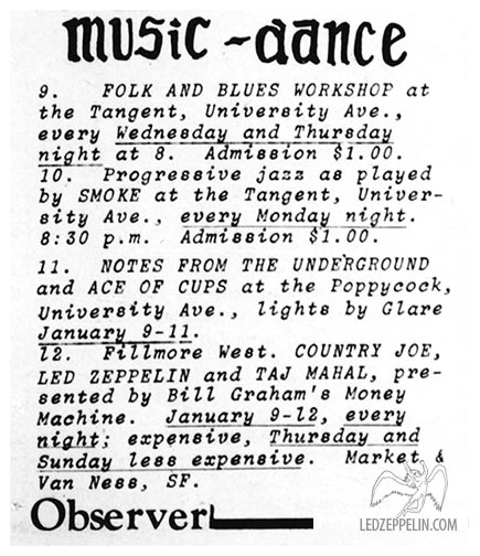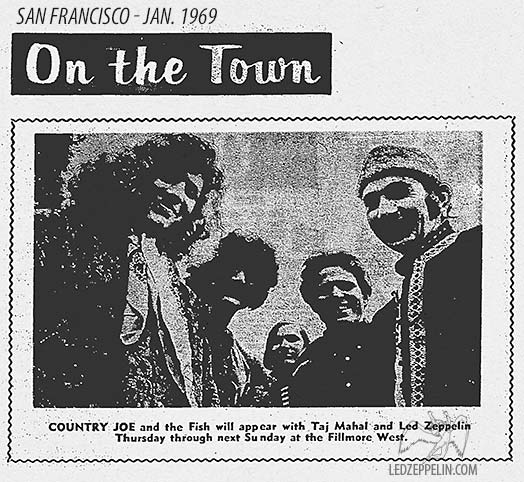 Lineup: Country Joe and the Fish, Led Zeppelin, Taj Mahal.