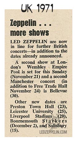 Setlists during this tour include: Immigrant Song, Heartbreaker, Black Dog, Since I've Been Loving You, Celebration Day, Going to California, That's the Way, Tangerine, Bron-Y-Aur Stomp, Dazed and Confused, Stairway to Heaven, What Is and What Should Never Be, Whole Lotta Love (medley).