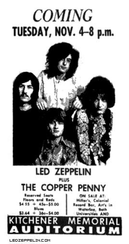 Although the best rock ever to be held in this area, the Zeppelin group drew a very small crowd. Let’s hope the poor turnout won’t keep them from making a return trip. (D. Fisher, University of Waterloo news, Nov. 7, 1969)