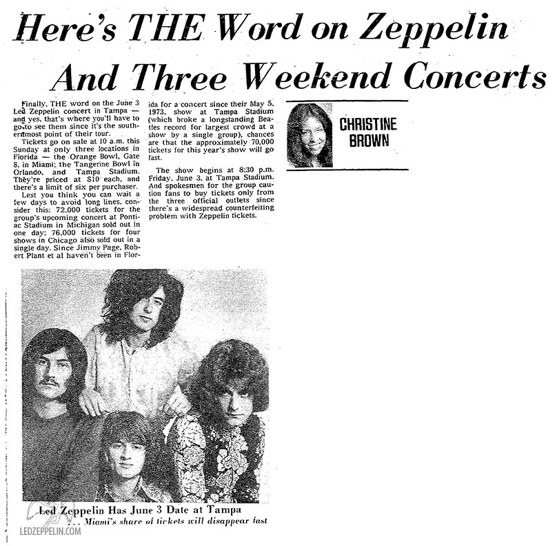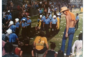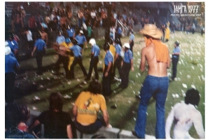 The cry "We want Zeppelin. We want Zeppelin" came from the 70,000 fans as rocks and bottles began flying onto the stage."We had what had to be called a small riot. There were between 3,000 and4,000 people who were unruly and disorderly," Tampa Police spokesman Johnny Barker said.