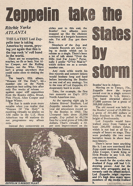 Press report: LED ZEPPELIN BREAKS ATTENDANCE RECORD AS WELL AS AN OLD BARRIER OF SILENCE