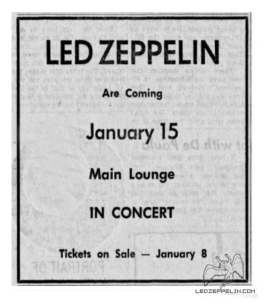 The University of Iowa’s Central Party Committee was in charge of organizing the January concert at the Iowa Memorial Union’s Main Lounge, and their hard work already had some unforeseen hiccups — the crappy weather was just the start. They had to book a replacement band for jazz sensation Count Basie, and they decided to roll the dice with a group of four guys on their first American tour. The show must go on. And so Iowa was introduced to Led Zeppelin.